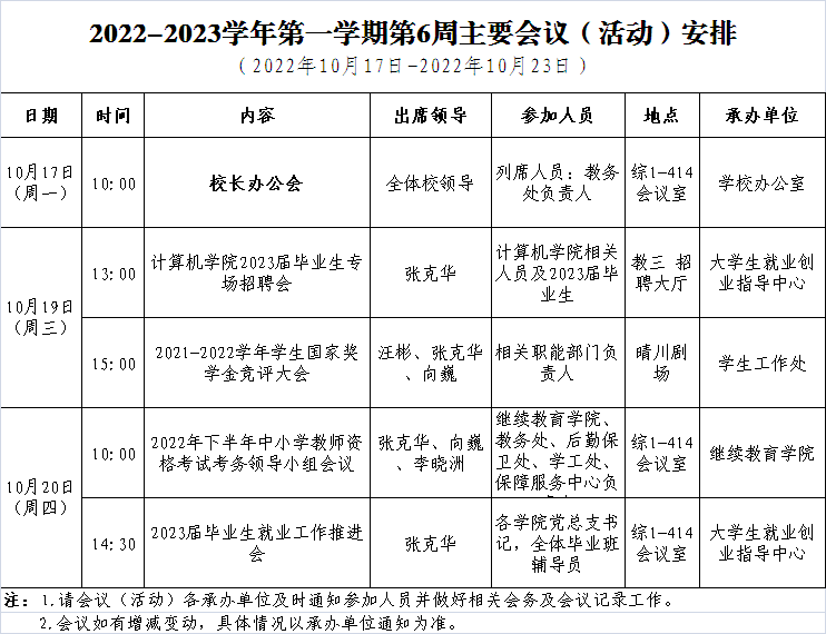 下一条:2022年秋季学期第5周主要会议(活动)安排