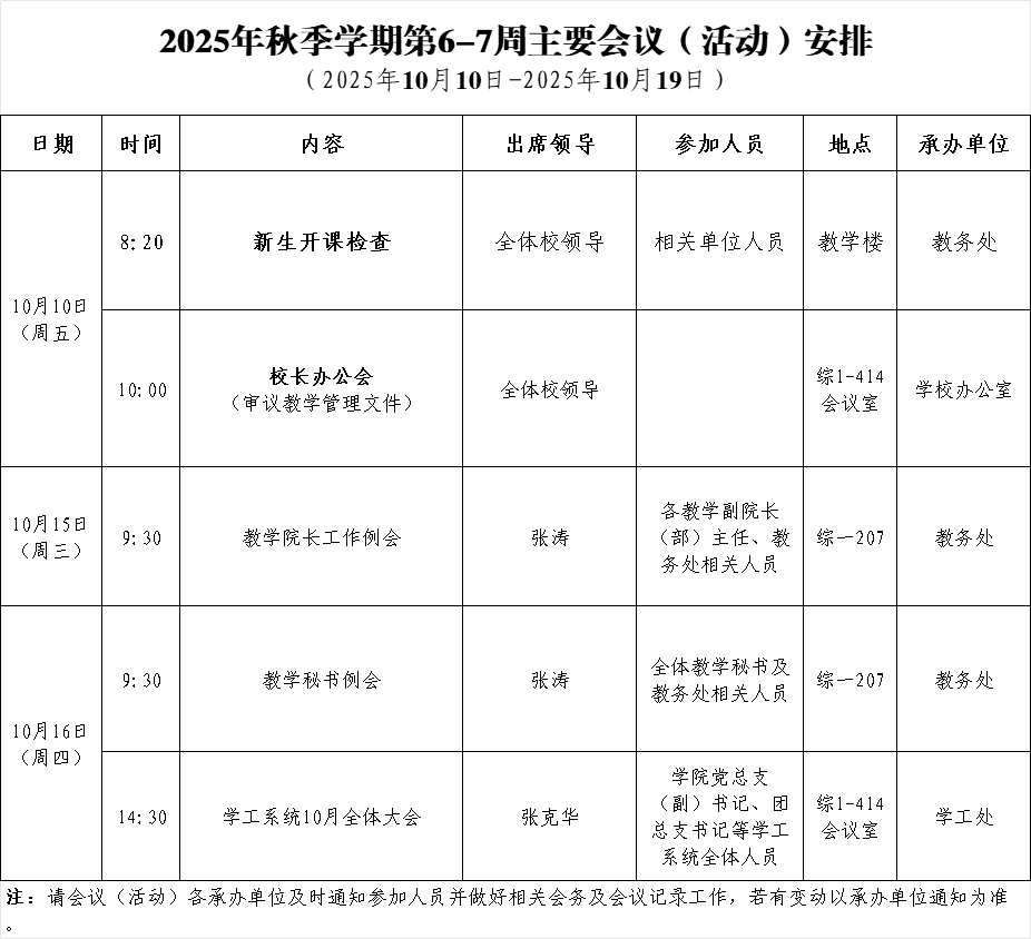 上一条:2025年秋季学期第7周主要会议(活动)安排