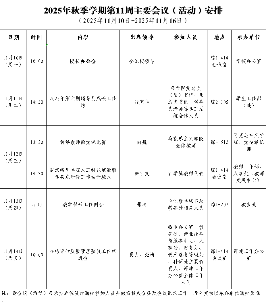 下一条:2025年秋季学期第10周主要会议(活动)安排