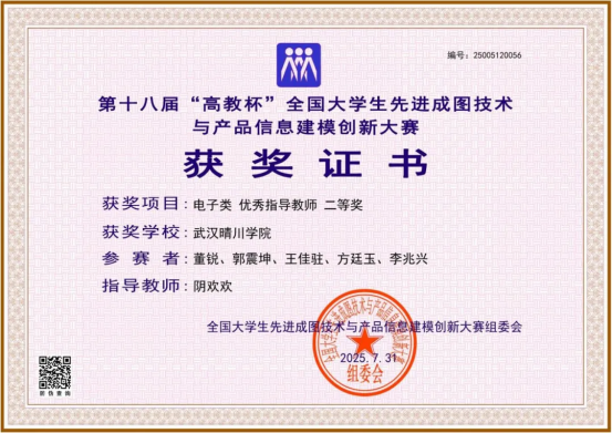 一直以来,学校遵循“以赛促教、以赛促学、以赛促改”的理念,致力于培养学生的工匠精神、激发创新意识,提升其综合素质与专业能力。学校将以此次获奖为契机,深化教育教学改革,强化实践教学体系建设,持续巩固学生工程图学基础与数字化成图技术能力,着力培养更多兼具创新精神与实践能力的高素质人才,为工程教育高质量发展贡献更大力量。