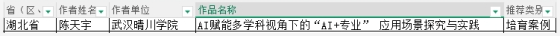近日,教育部教育技术与资源发展中心(中央电化教育馆)公布了2025年教师人工智能应用案例征集活动评选结果。武汉晴川学院计算机学院陈天宇老师申报的《AI赋能多学科视角下的“AI+专业”应用场景探究与实践——基于翻转课堂的AI工具集成使用案例》成功入选国家级高等教育培育案例名单。