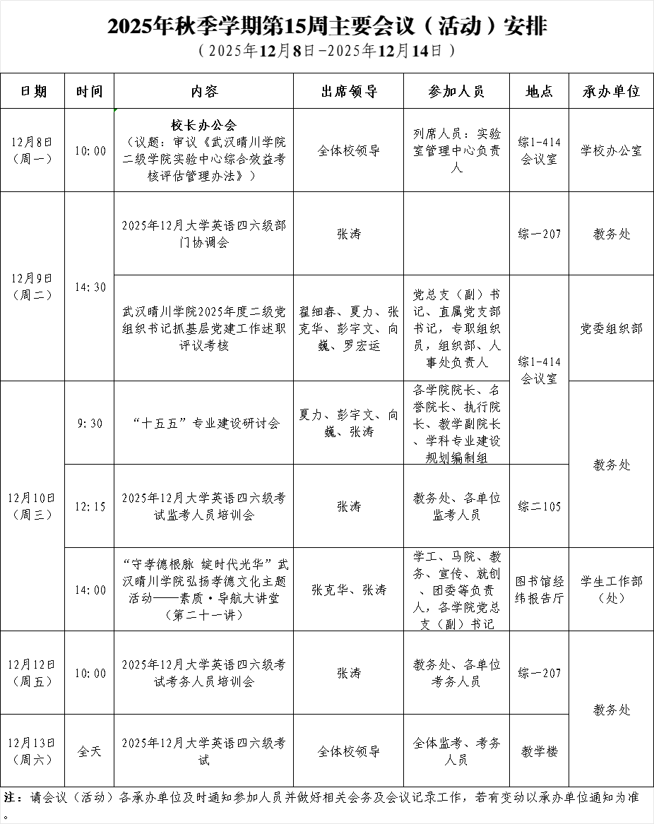 下一条:2025年秋季学期第14周主要会议(活动)安排