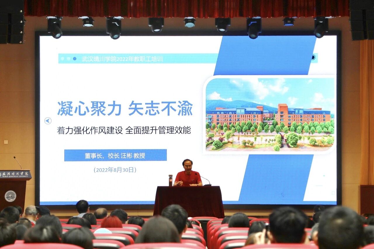 △ 学校董事长、校长汪彬教授作《着力强化作风建设 全面提升管理效能》主题报告
