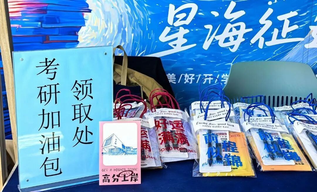 图书馆开展“研途相伴·温暖上岸”系列活动,发放内含祝福卡片、答题卡与暖暖包的加油包;设置“心愿墙”与“研途补给站”,提供免费文具,倡导专注、自律的学习环境,以无声的细节支持每一位专注备考的学子。